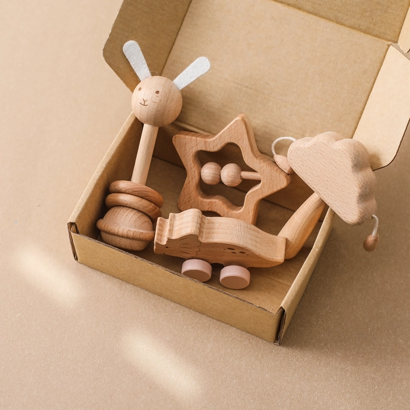 • Safe and Natural: Made from premium beech wood, these toys are free from harmful chemicals and safe for your baby to chew and play with.