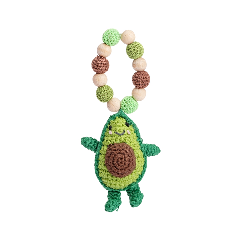 Wooden and Silicone Baby Teething Bracelet with Knitted Avocado Pendant