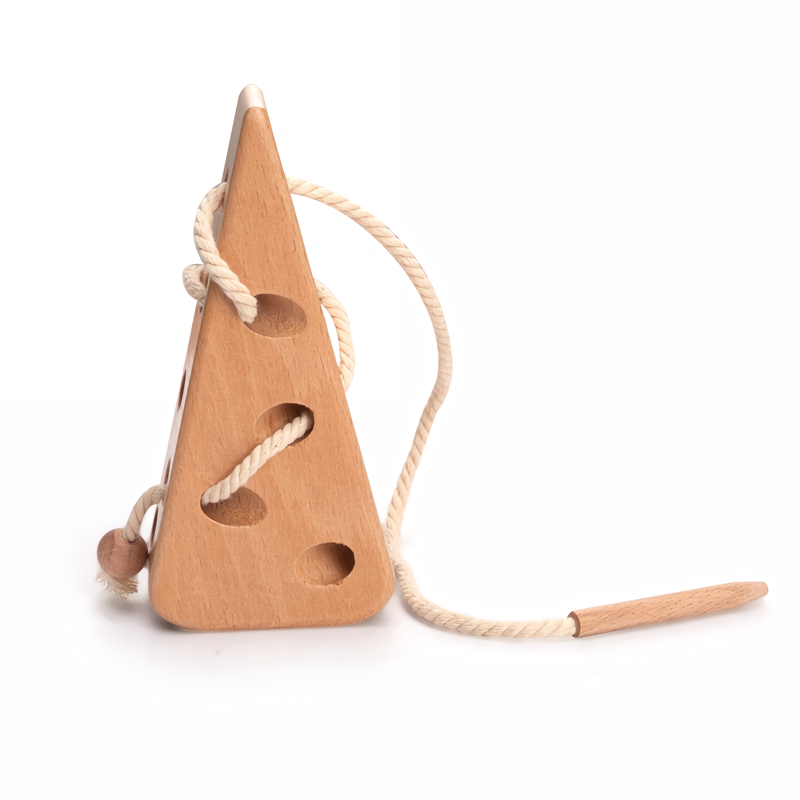 Our Wooden Cheese Threading Game is perfect for interactive play and learning. Whether your child is playing independently or with friends, this toy provides a stimulating environment that promotes cooperative play and social interaction. The cheese-shaped design with multiple threading holes offers endless opportunities for creative exploration and problem-solving.